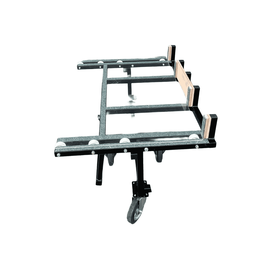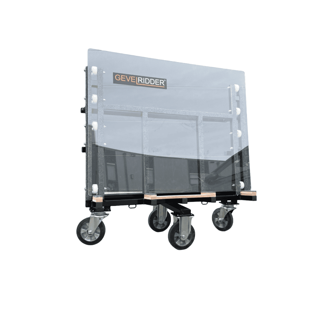 Der Gevelridder Kipp-Transportwagen ist der wendige Transportwagen, um schwere Küchenarbeitsplatten aus Naturstein und andere Plattenmaterialien sicher von außen nach innen zu bewegen und horizontal zu kippen. Der Stahlrahmen, die breite Auflage (14 cm) und die Schwenkrollen vorn und hinten sorgen für maximale Kontrolle in engen Durchgängen, über Schwellen und in engen Kurven.