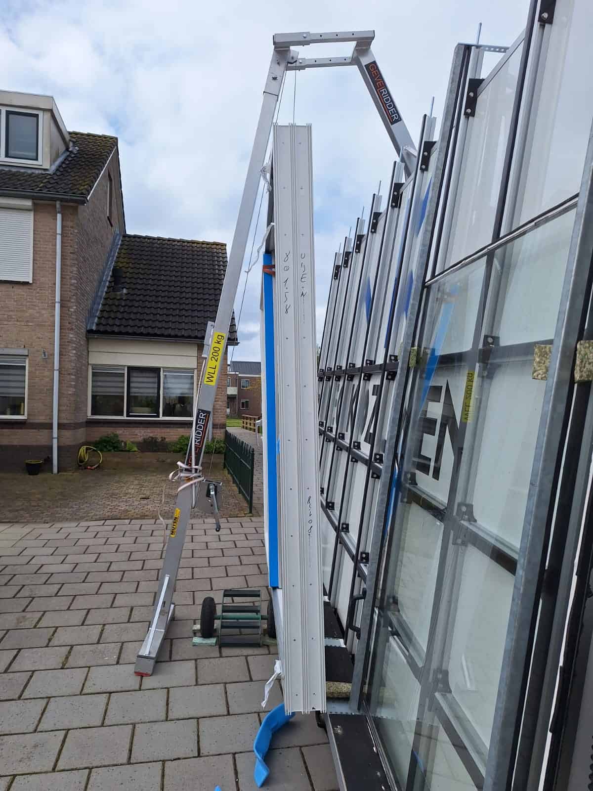 Das Bein des Gevelridder Glasresteelwagens ist eine lose Stütze, die am Gevelridder S, Gevelridder Nautica oder Gevelridder M, Gevelridder M Hybrid oder Gevelridder L Hybrid angebracht werden kann und mehr Platz schafft, um z.B. einen Fensterrahmen höher als den Rest des Wagens anzuheben. Diese Innovation bietet eine praktische Lösung für sicheres und effizientes Arbeiten in der Höhe. Mit einer Länge von 140 cm erreicht die Stütze eine Arbeitshöhe von ca. 1,07 Metern und hat damit eine ideale Größe für verschiedene Arbeiten.