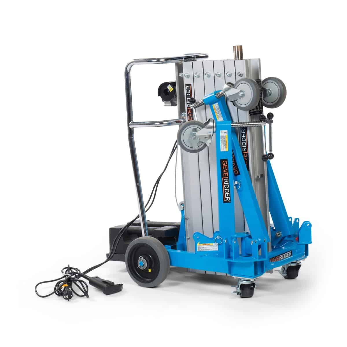 Jusqu’à une hauteur de 4,2 mètres, électrique, également adapté pour l’installation de plaques de plafond, stores, volets roulants, climatiseurs, etc. Avec une plateforme pratique fournie.Fonctionne avec un treuil électrique et est très compact à transporter et à installer sur le lieu de montage. Si tu installes des stores ou des volets roulants, nous avons aussi des chariots pratiques pour le transport sans endommager les profilés.