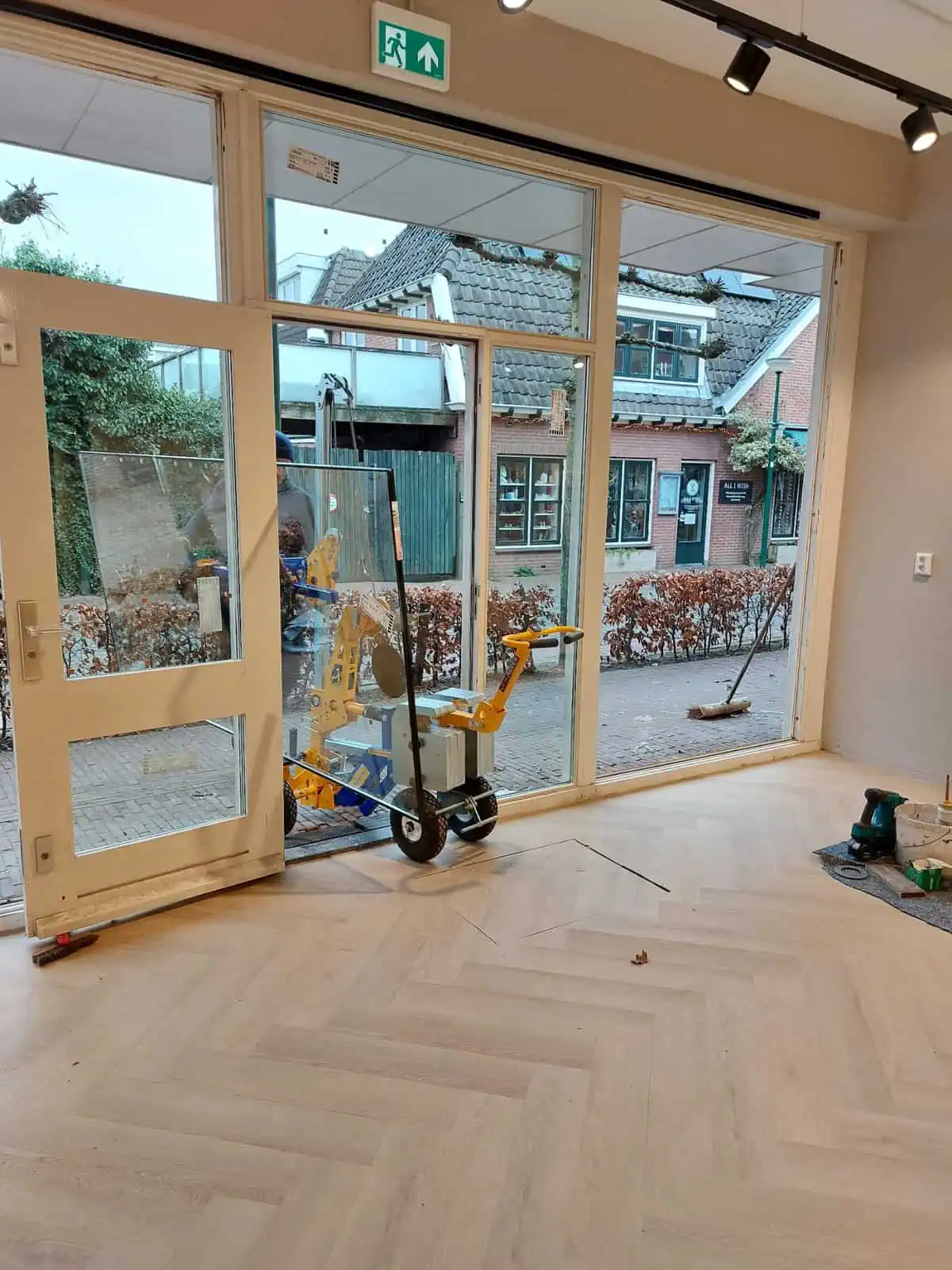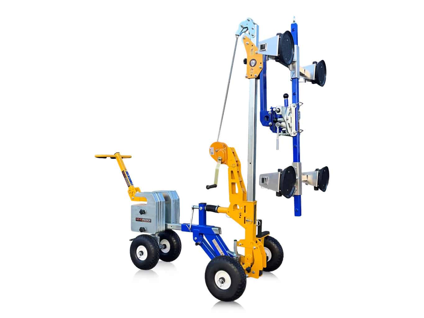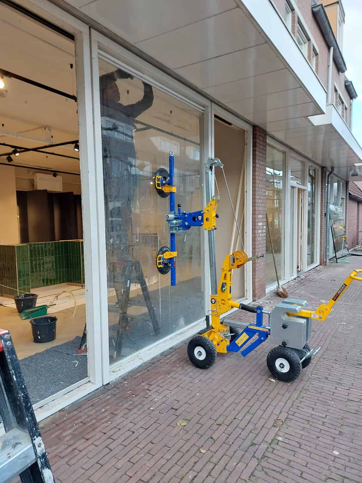 Un lève-vitrage mobile pratique pour tourner, transporter et poser le verre. De plus, tu peux acheter une extension inférieure pour 240 euros supplémentaires pour pouvoir saisir le verre plus bas.