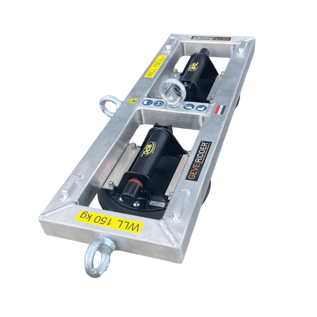 De SirLiftAlot 2: een lichtgewicht aluminium zuig en hijsframe, welke je in 3 posities kan hijsen. De zuiger werkt met twee pompzuiger van lexaan. Het frame heeft beugels voor het aanbrengen van de tweede dubbele valbeveiliging.