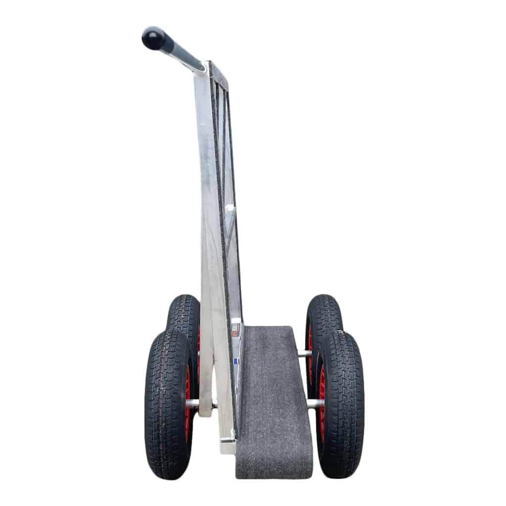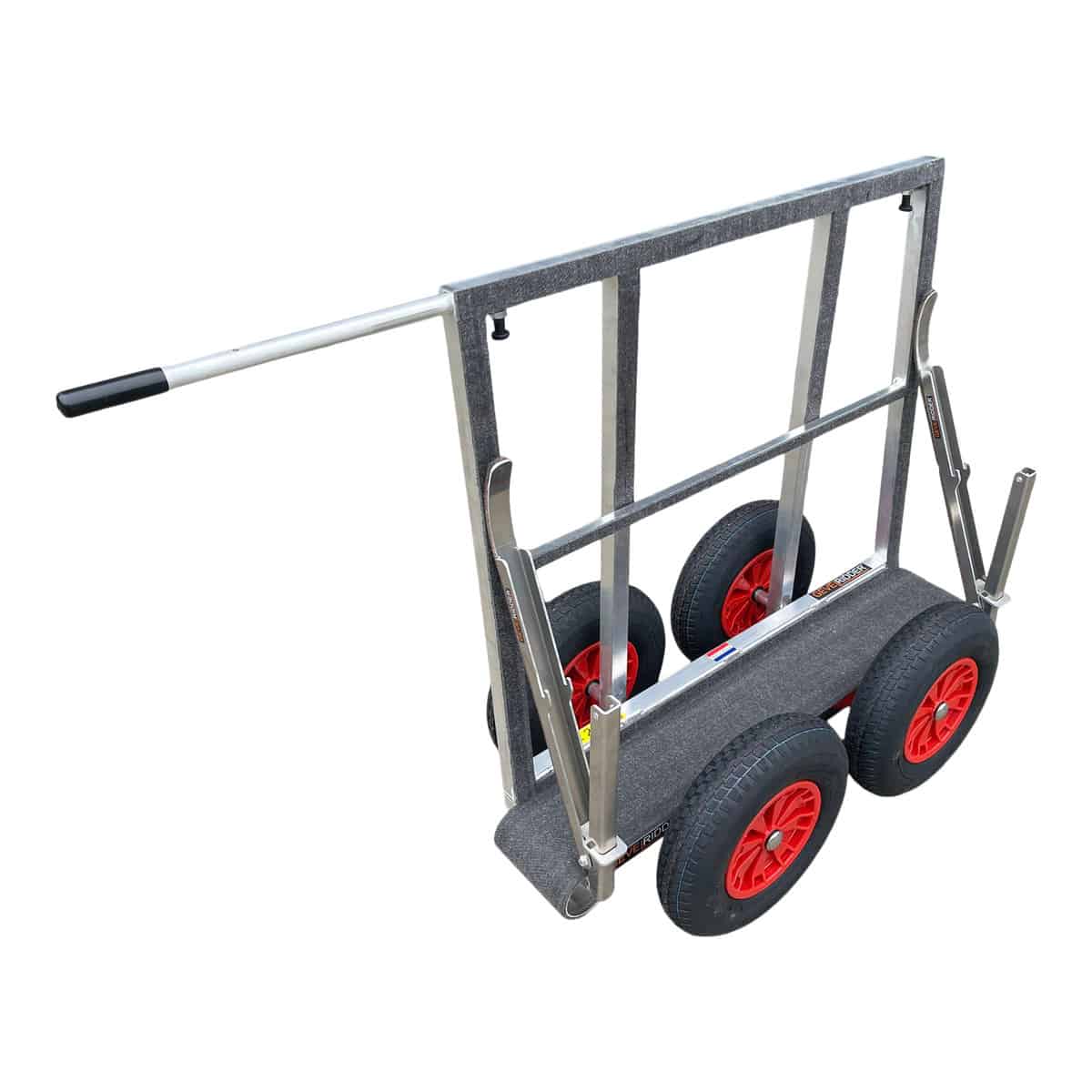 De laadplank van de Glaskar Platenwagen is 18 cm breed, terwijl de totale breedte inclusief wielen slechts 50 cm bedraagt. Voor meer handzaamheid is er ook een versie beschikbaar met kleinere wielen (250 kg belasting). Bent u op zoek naar een enkelasser? Onze enkelasser heeft een maximale WLL (Working Load Limit) van 150 kg. Verstelbare handvaten met een snel klip-mechanisme en zwart/antraciet vilt maken de ervaring compleet.