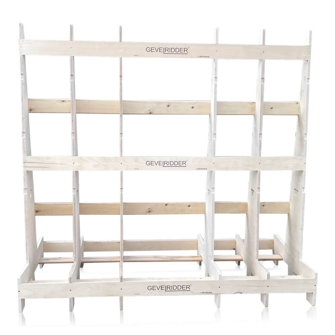 De Houten Glasbok – 169 cm hoog is ideaal voor de opslag en het transport van glas, plaatmateriaal, deuren, ramen, kozijnen en ander materiaal dat rechtopstaand gestockeerd dient te worden. Ze bestaan uit een combinatie van rechtopstaande houten schotten en dwarsplanken.