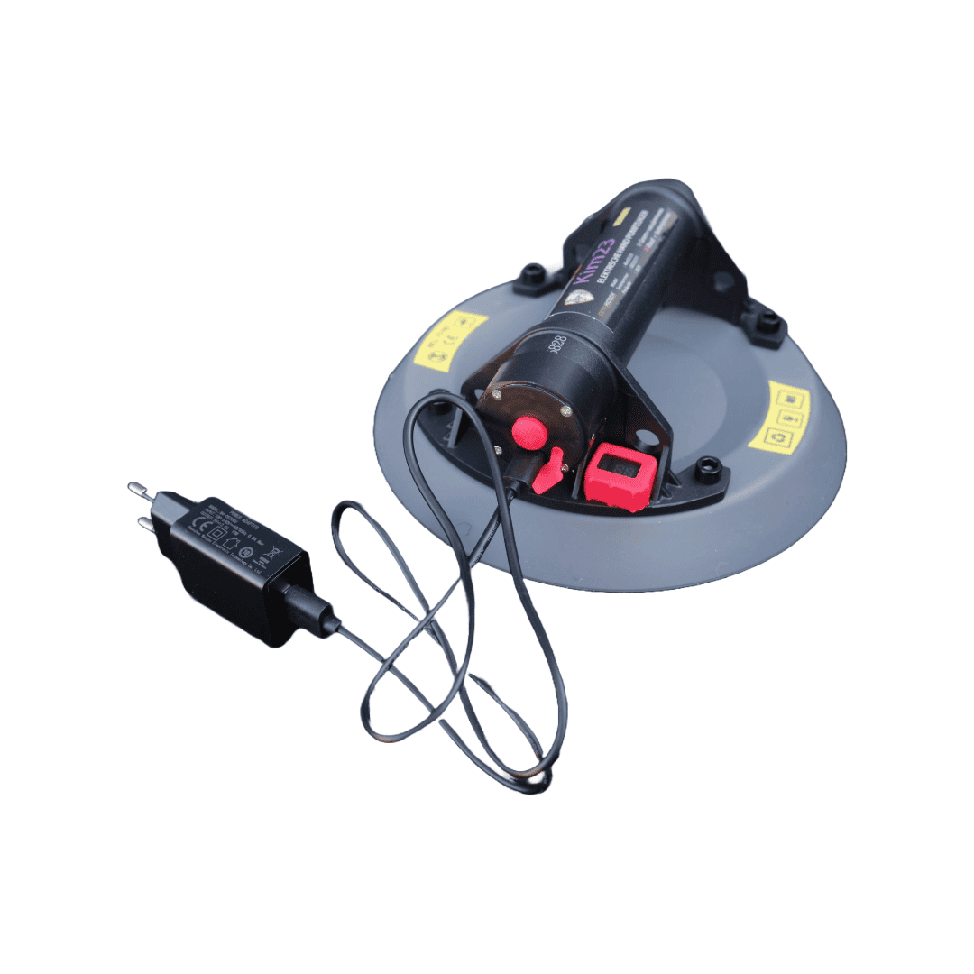 Gevelridder presenteert de KIM23 met grijs rubber. De zwarte pompzuigers willen wel een strepen achter laten op glas, bij het gebruik van deze grijze versie heeft u hier geen last van . De zuigers heeft een rubber manchet voor extra bescherming van de rand. Deze geavanceerde pompzuiger wordt aangedreven door een interne lithium-accu welke ook zwaarder is uitgevoerd dan de kim75 versie. De vacuüm-heffer is specifiek ontworpen voor het tillen van niet-poreuze oppervlakken. De KIM23 is uitgerust met een auto vacuüm systeem, inclusief een digitaal display voor optimale prestaties en gebruiksgemak.