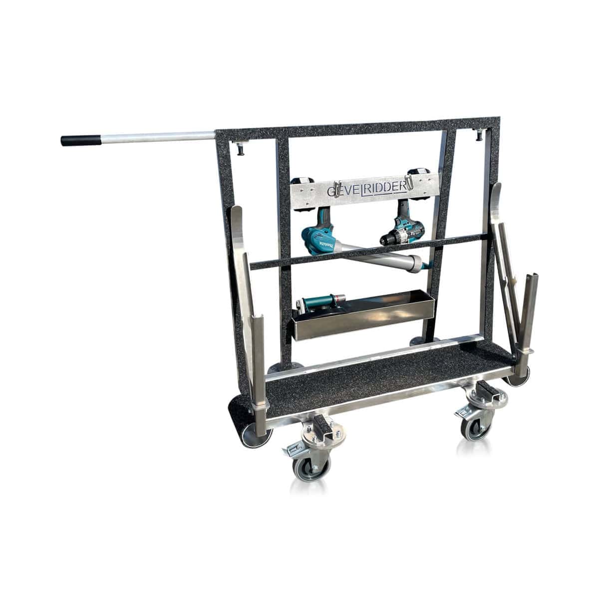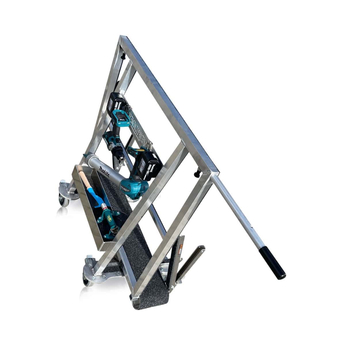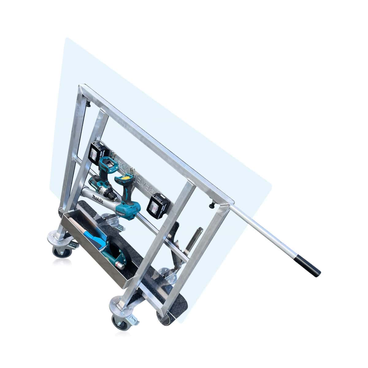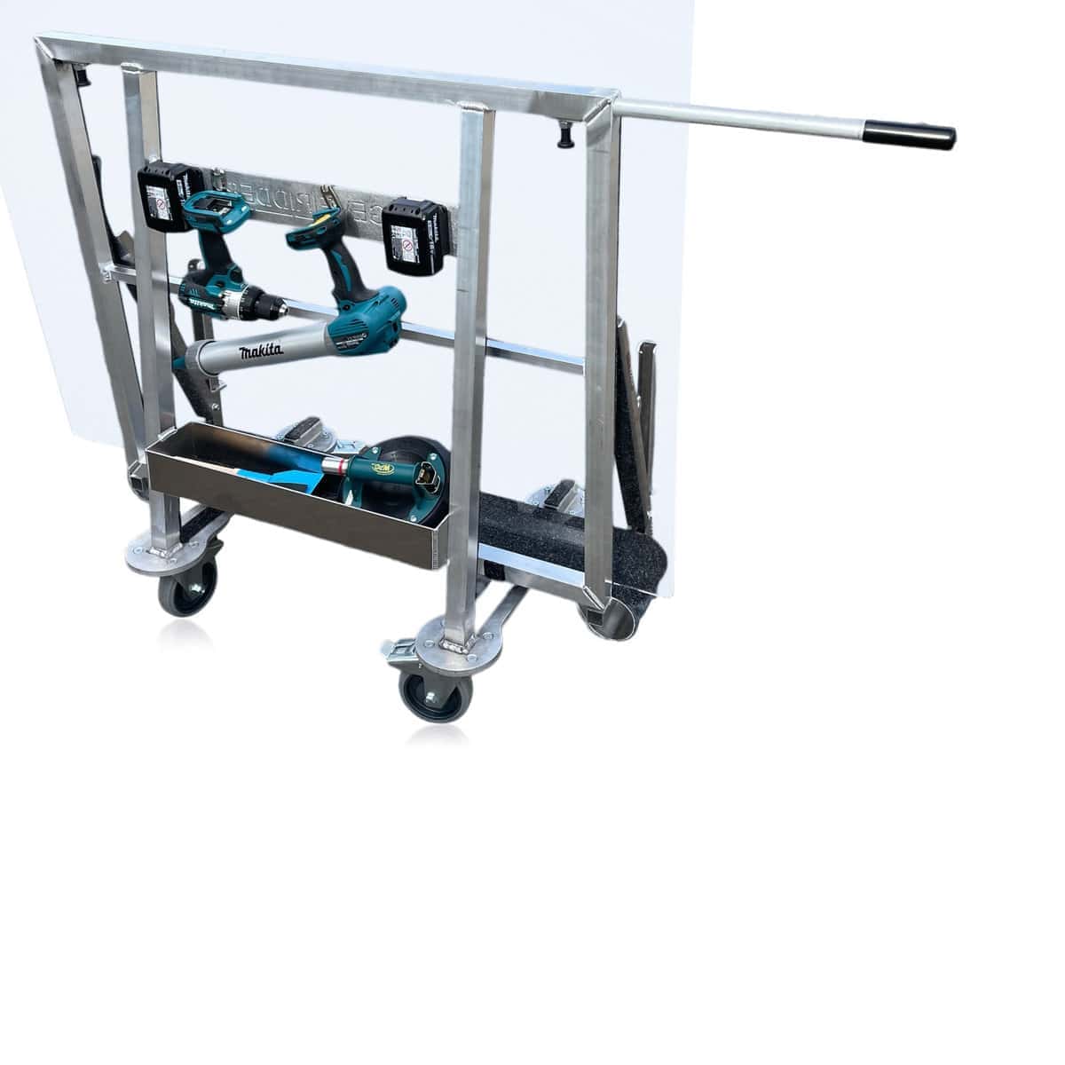 Extra functies: Deze platenwagen gaat verder dan alleen transport. De kar heeft een handige ophangstrip voor elektrisch gereedschap en een gereedschapbakje voor essentiële benodigdheden. Dankzij de mogelijkheid om clips aan te brengen, kun je ook je accu’s handig ophangen.
